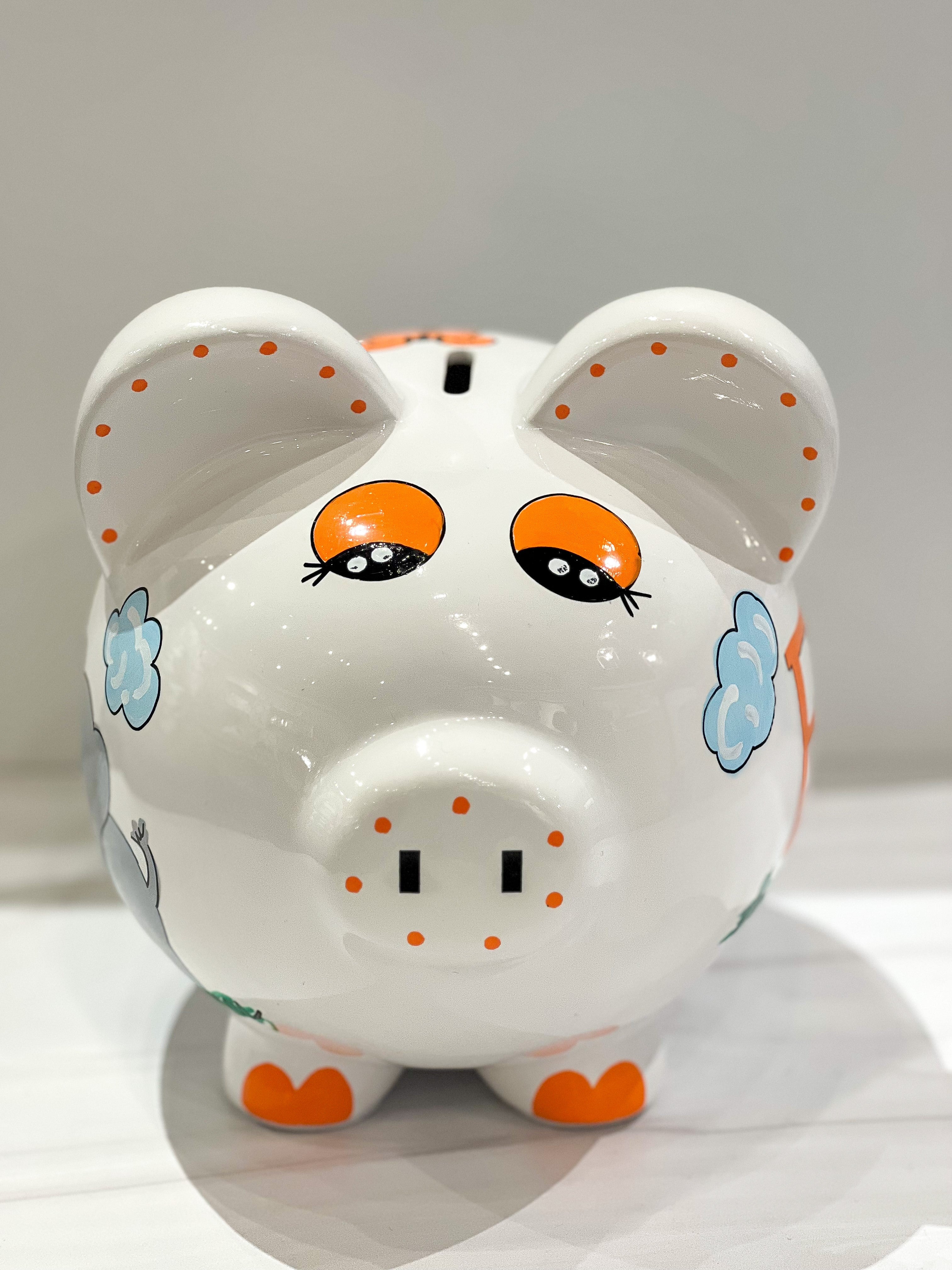 A personalized treasure that will last a lifetime. Ideal for a new baby gift or a child's first lesson in saving! We can customize with the child's name and birth information on the back of the piggy's ears. The piggy bank has been J.A. Whitney's TOP selling gift for over 30 years!