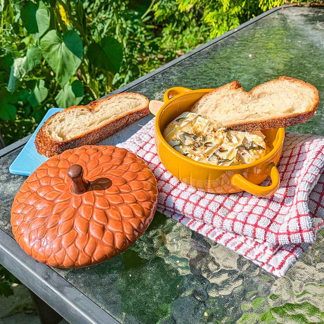 This adorable acorn-shaped ceramic baker melts brie and cheese dips to perfection. Add your favorite toppings—fruits, nuts, or savory extras—then bake. Perfect for entertaining or a cozy night in!