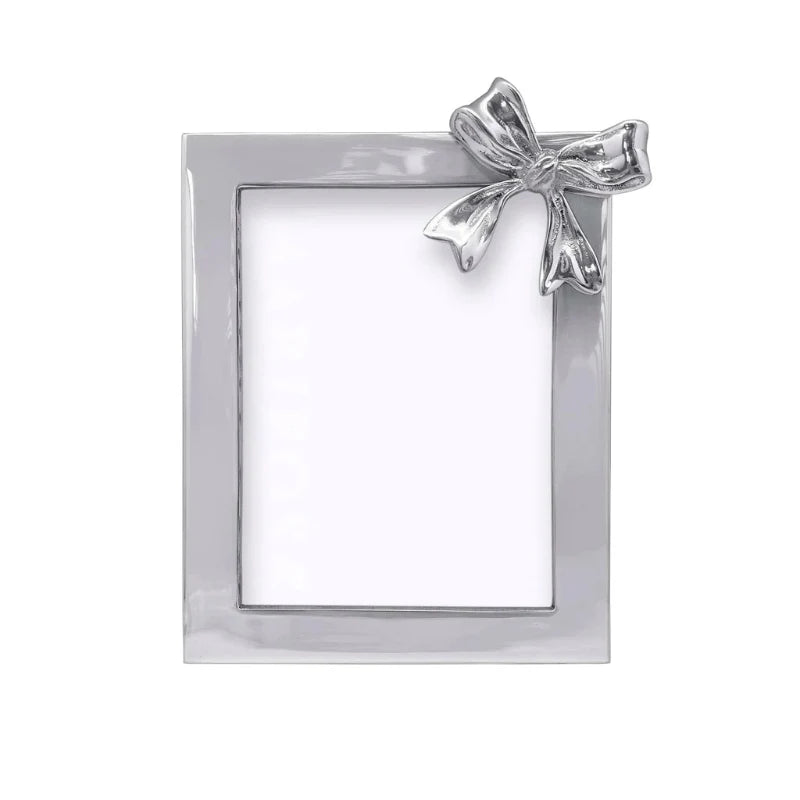 The Bow 5x7 Frame features a hand sculpted bow on top, ready to display an adorable picture of your child or grandchild. Handcrafted from 100% recycled aluminum.