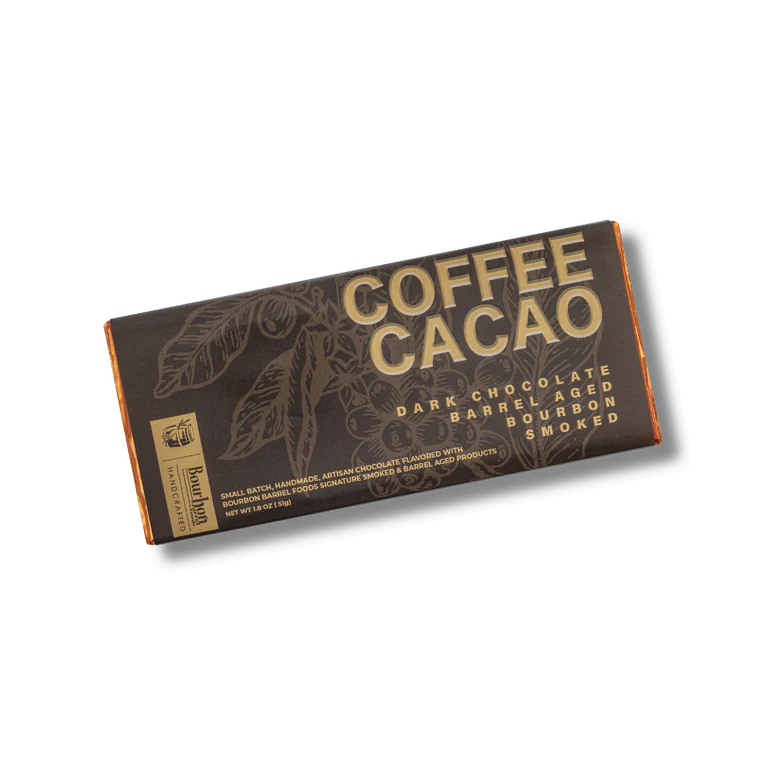 Dark chocolate meets bold coffee in this small-batch bar. 100% bourbon barrel aged Arabica beans blended with smoked cacao nibs for a flavor that's bittersweet with whispers of bourbon barrel richness. Handcrafted in tiny batches for maximum deliciousness.