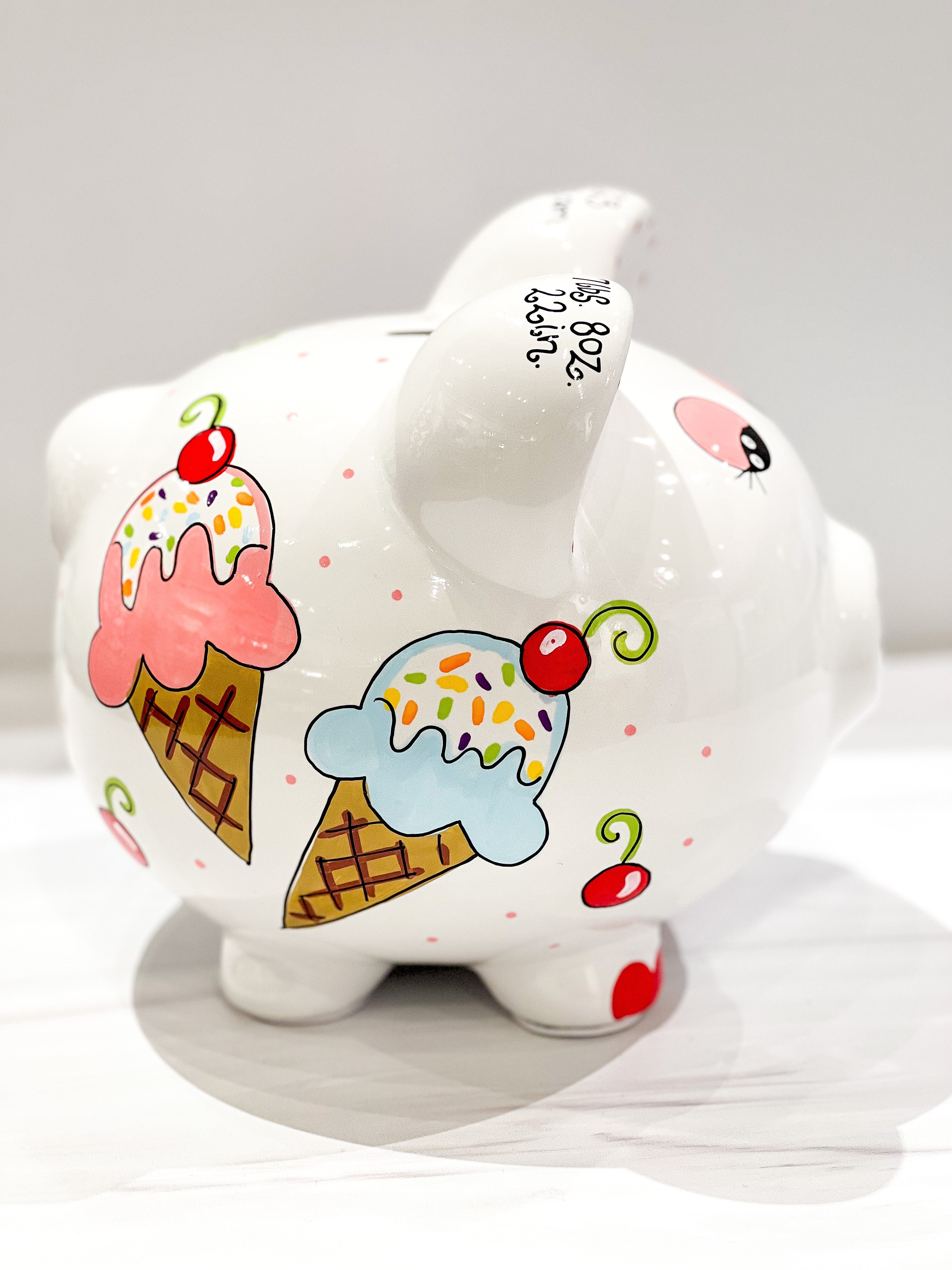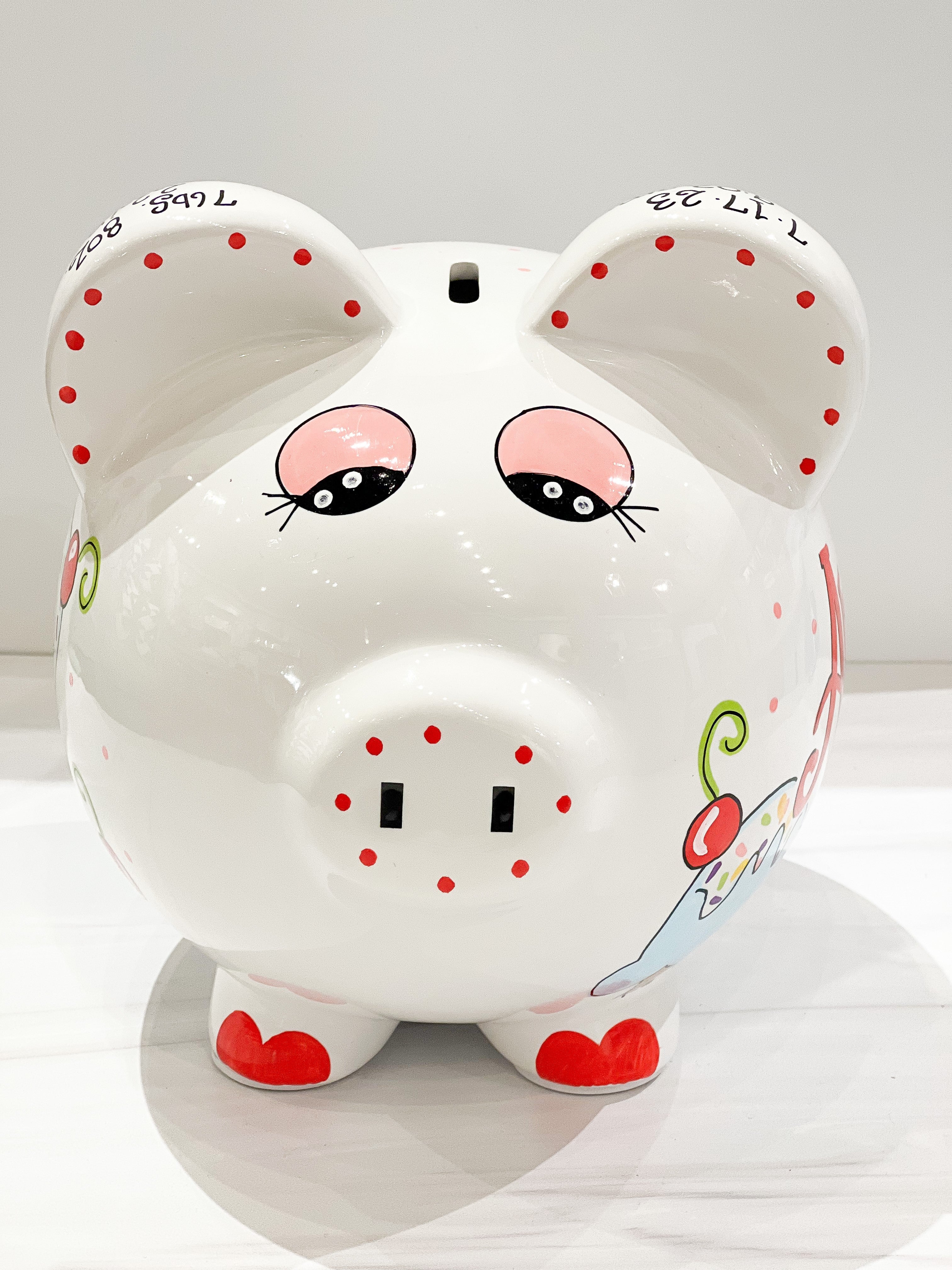 A personalized treasure that will last a lifetime. Ideal for a new baby gift or a child's first lesson in saving! We can customize with the child's name and birth information on the back of the piggy's ears. The piggy bank has been J.A. Whitney's TOP selling gift for over 30 years!