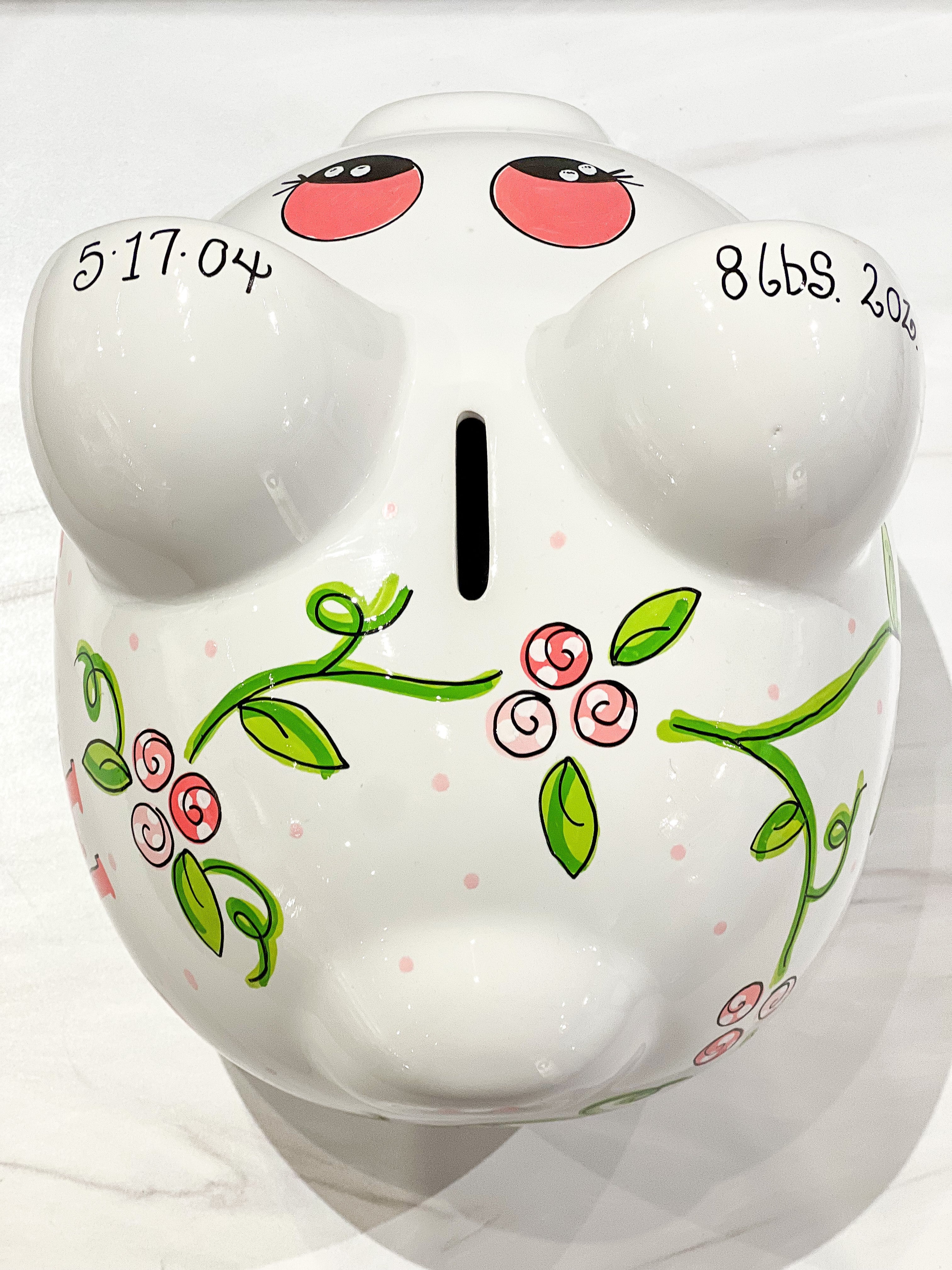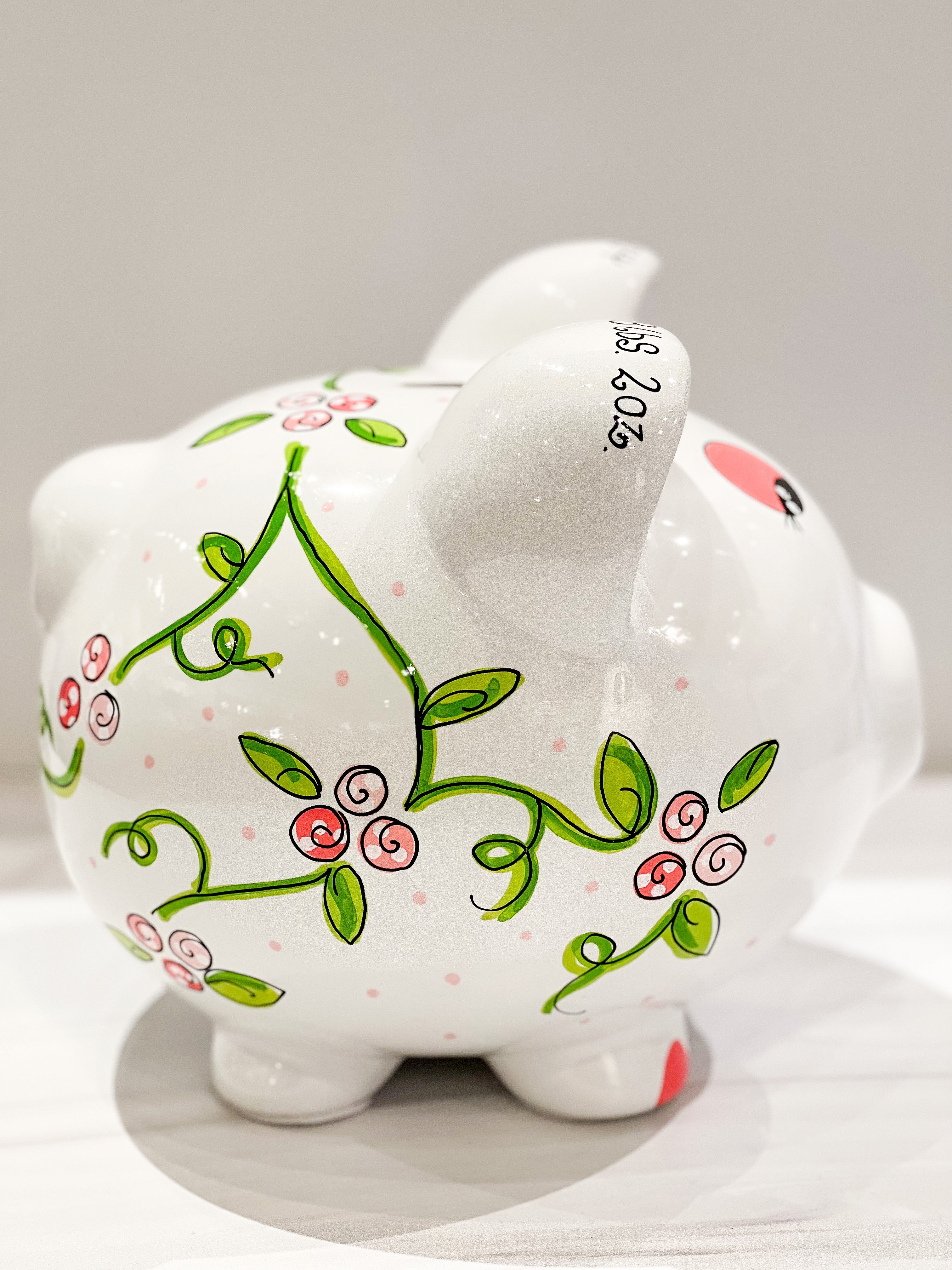 Hand-Painted Personalized Piggy Bank - Twisty Vine Flowers – J.A. Whitney