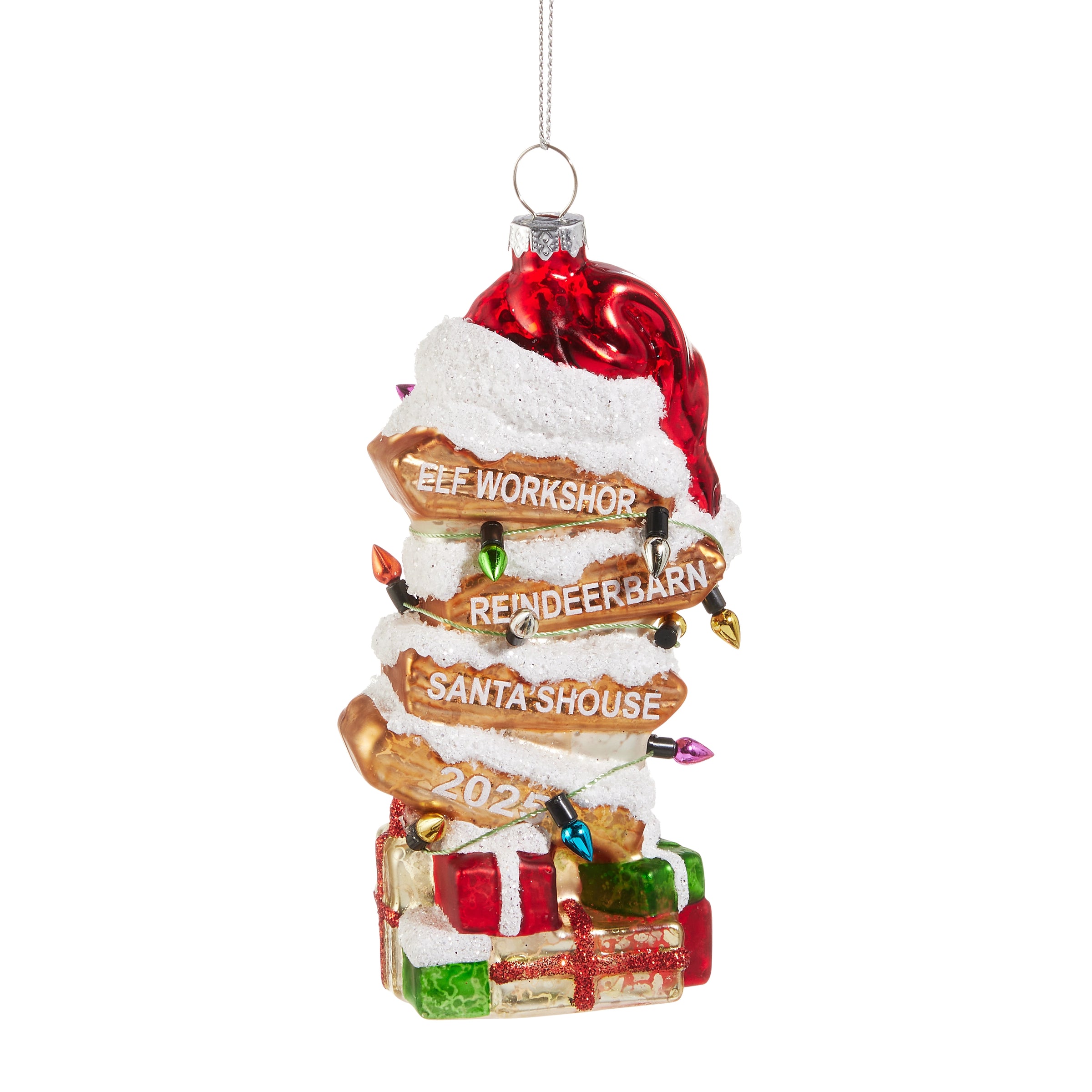 Brighten your holidays with this playful 5" North Pole Ornament, made entirely of glass. Measuring 2.75" long, 1.25" wide, and 5" high, it adds a tall, festive touch to your tree or mantel. Its whimsical design brings a touch of magic and fun to your seasonal décor!