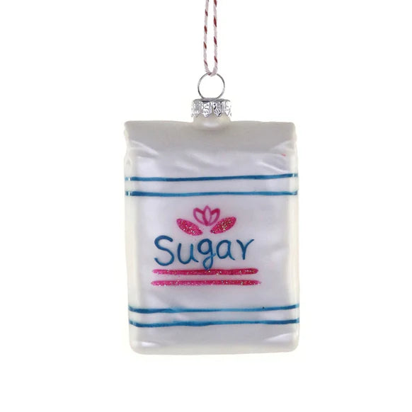 Sweet as can be! This charming glass ornament brings a dash of kitchen humor to your holiday décor. Shaped like a classic bag of sugar, it's the perfect pick for bakers, candy lovers, and anyone who enjoys a little culinary wit on their tree. Crafted in gleaming glass with delightful details, this ornament celebrates the sweet side of the season. Hang it high and let your love of all things sugary shine!