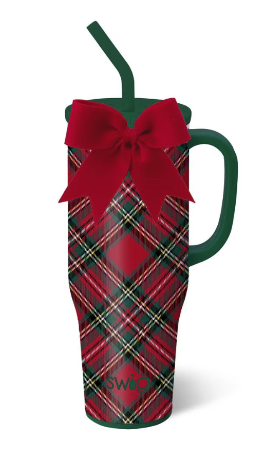 Mega sips, mega chill! 🧊 Celebrate the season in timeless style with this red and green traditional Christmas tartan design. A removable charming bow adorns each item like a gift.