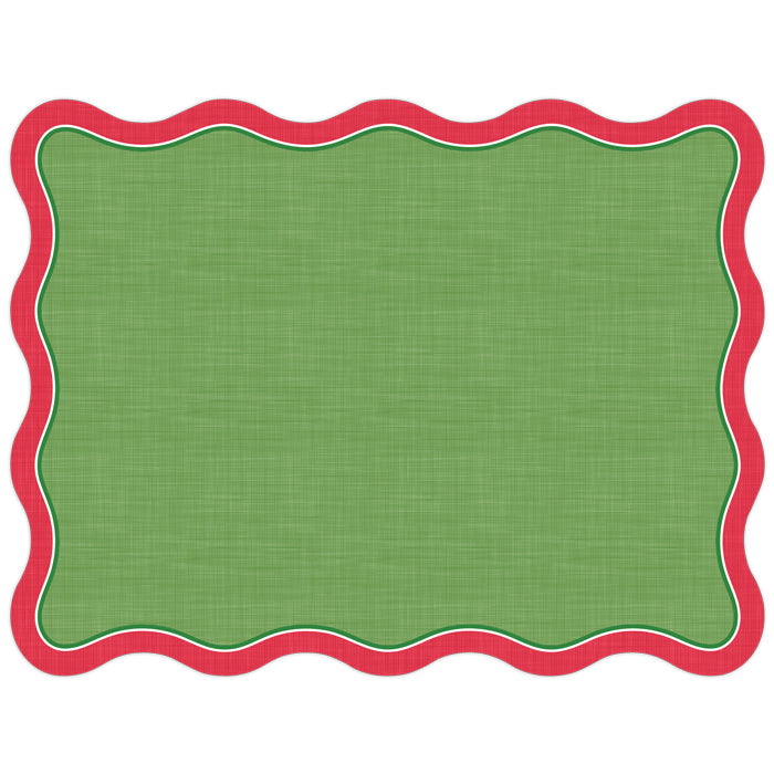 Liven up your holiday table with these Green & Red Linen Wavy Edge die-cut paper placemats! Each pad includes 10 vibrant placemats that bring a playful twist to your festive dining. Perfect for adding color and style while keeping cleanup quick and easy. Make every meal merry with this charming holiday accent!