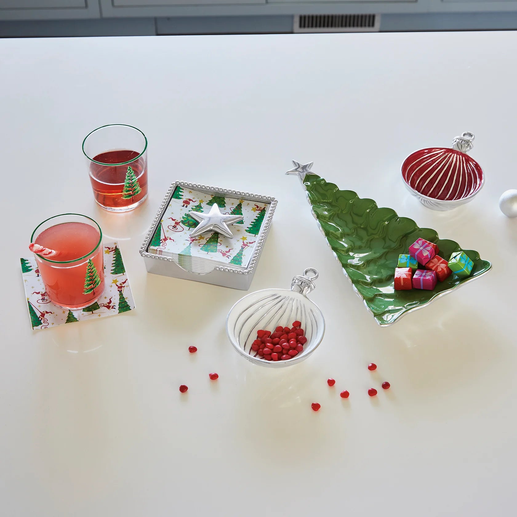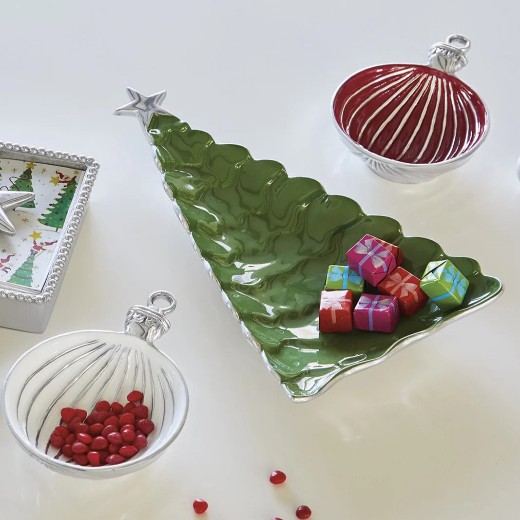 Crafted in the shape of a classic Christmas tree and finished with a glossy green enamel, this dish is perfect for serving candies, nuts, or holiday treats. Whether used as a cheerful accent on your buffet or as a thoughtful hostess gift, it brings instant seasonal spirit to any setting. A merry must-have for your holiday hosting! Handcrafted from 100% recycled aluminum.