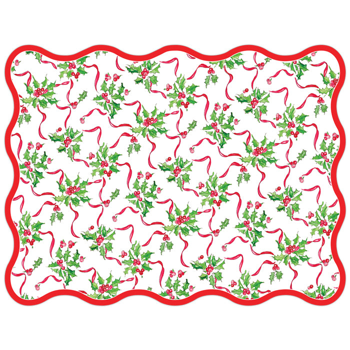 Spruce up your holiday table with these Holly with Berries and Wavy Border die-cut paper placemats! Each pad includes 10 festive placemats that add a pop of color and playful charm to any meal. Perfect for holiday gatherings, they’re easy to set and toss, making your celebrations bright and cleanup quick. Add a cheerful touch to every place setting!