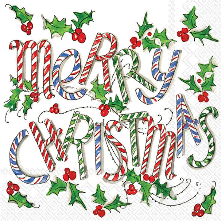 Celebrate the holiday season with these cheerful cocktail napkins featuring classic candy cane stripes and festive holly leaves. Perfect for spreading merry vibes and adding a splash of holiday fun to any party. Each playful pack includes 20 napkins, sized just right at 5"x5" for all your festive needs.