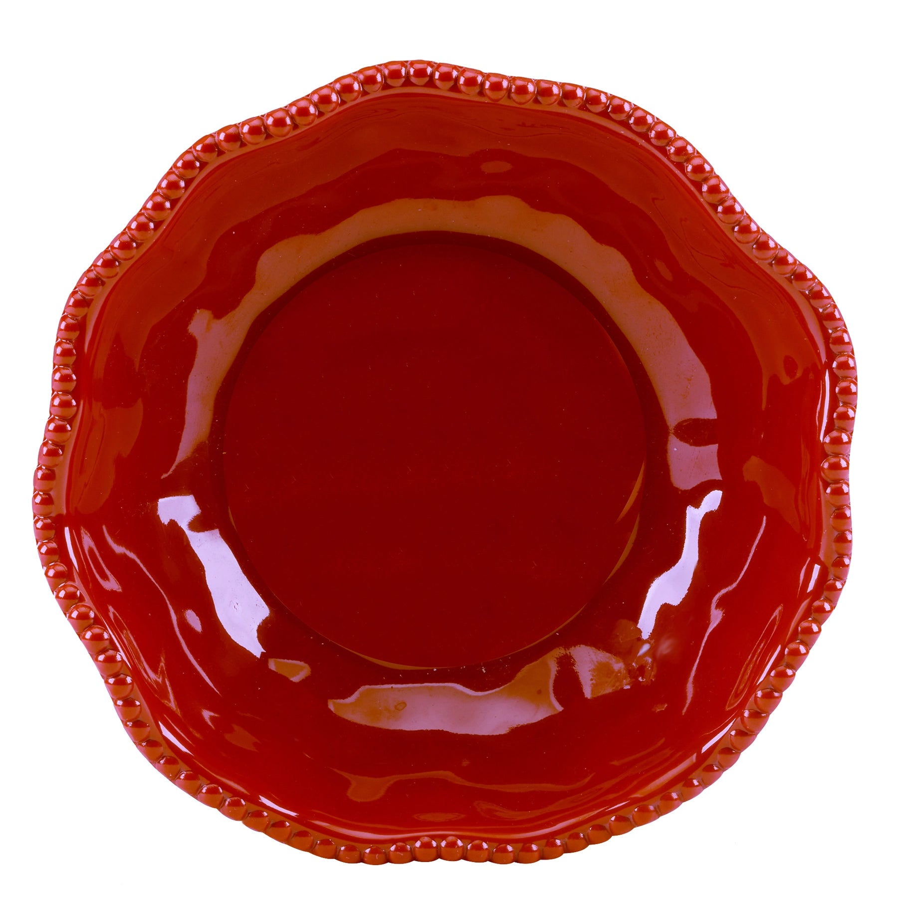 Serve up fun with the Perlette Red Melamine Large Serving Bowl! Its bright red color and beaded edge add a splash of joy to any table. Big enough for salads, pasta, or whatever you love, this sturdy, dishwasher-safe bowl makes cleanup a breeze. Perfect for mixing and matching, it’s sure to brighten your gatherings with style and ease.