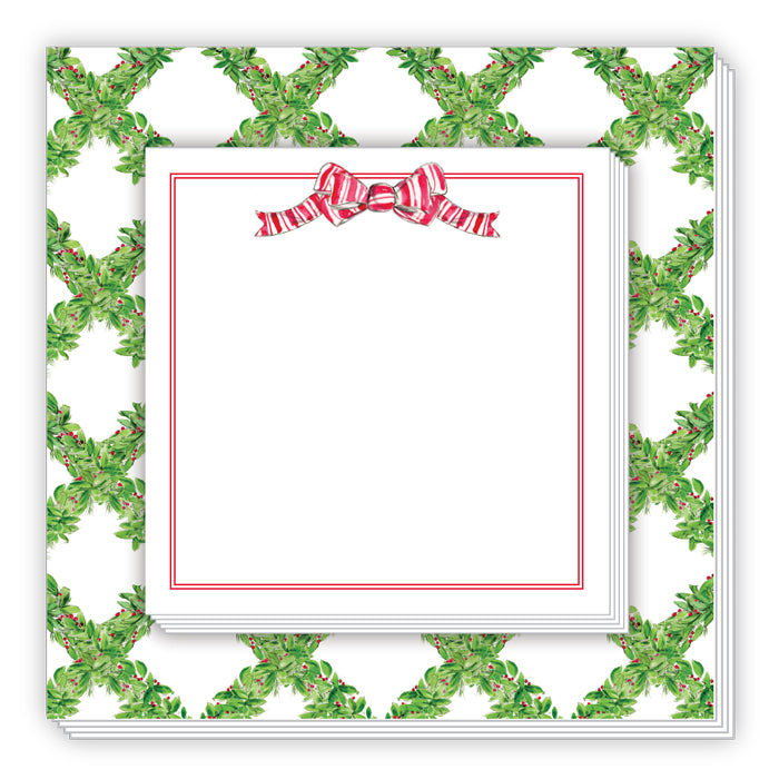 This charming Striped Bow / Holly Trellis Duo Notepad set is the perfect gift, thoughtfully tied with a vibrant color-coordinating ribbon. Inside, you'll find one large pad for all your big ideas and a mini luxe notepad for quick notes on the go. Both are proudly made in the USA, combining practicality with festive style to brighten up your desk or gifting moment.