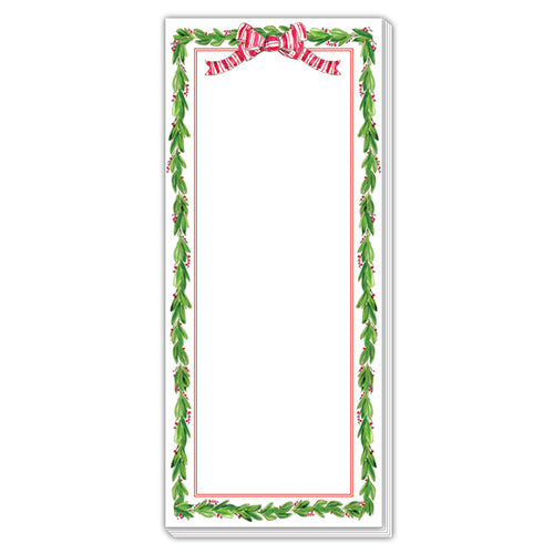 Holly w/ Berries & Red Striped Bow - Skinny Notepad