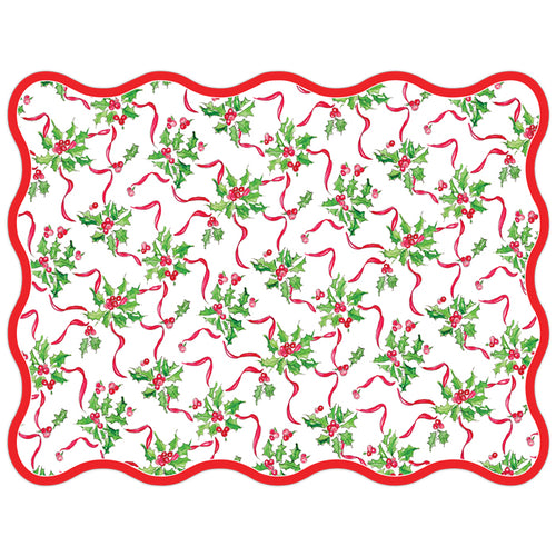 Holly w/ Berries & Wavy Border - Die Cut Paper Placemat