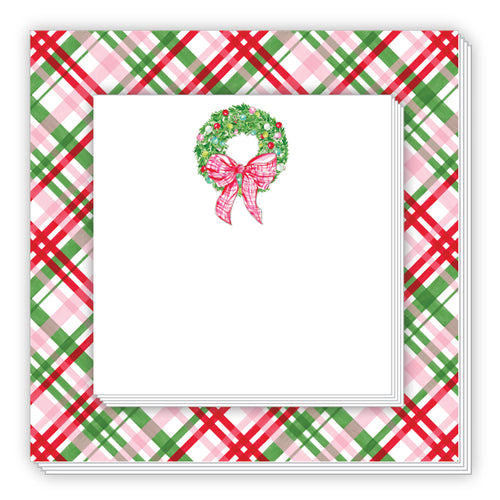 Wreath / Red & Pink Plaid Notepad Duo
