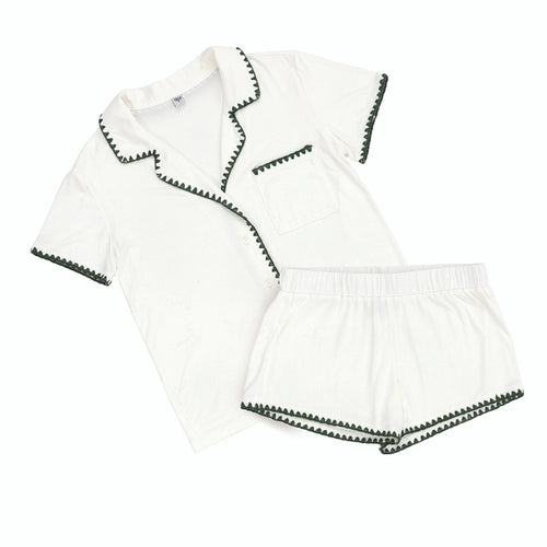 White + Forest Green Whip Stitch Short PJ Set