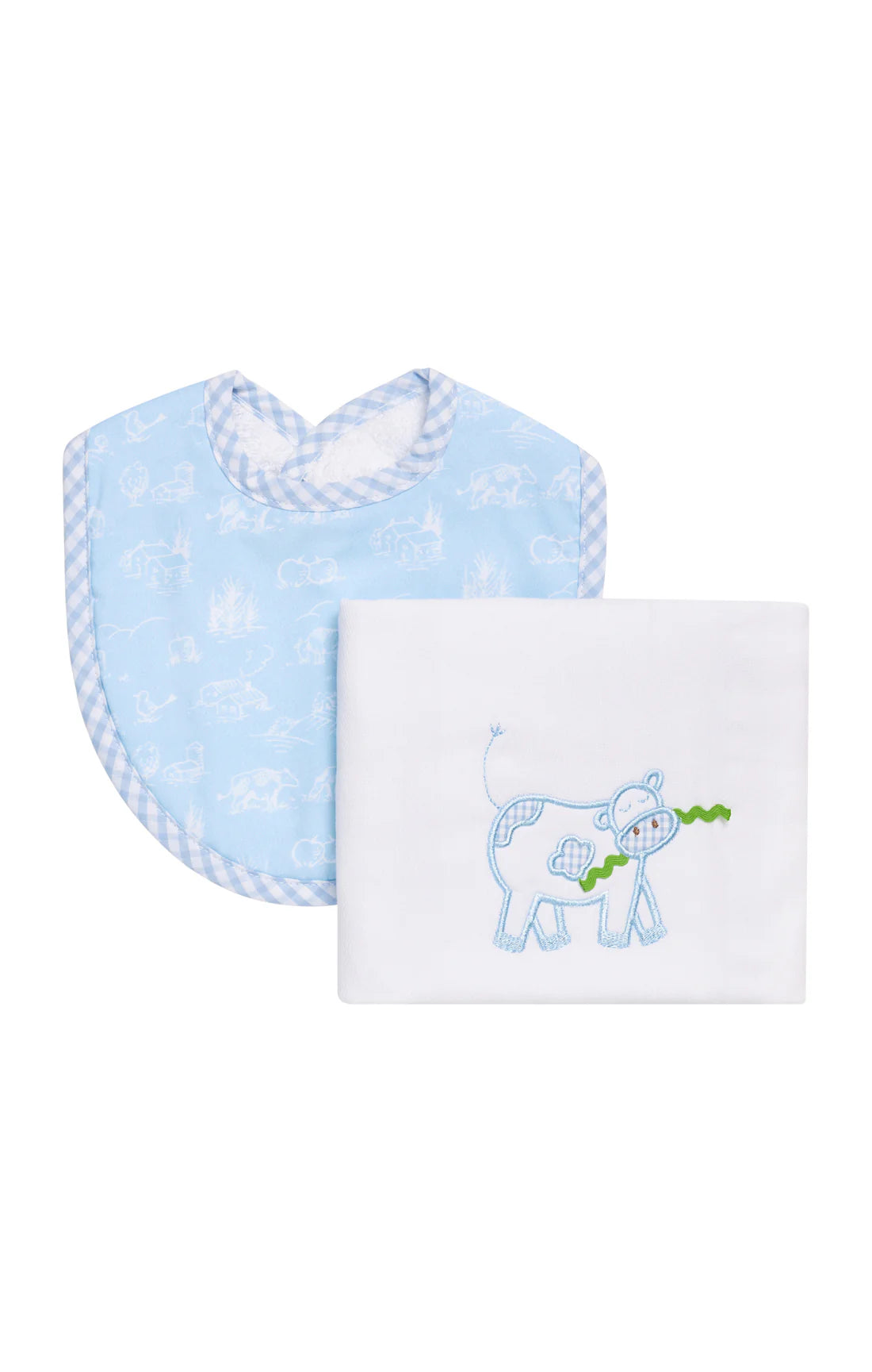 Blue Cow Box Set: Burp Cloth & Bib (Personalization Included)