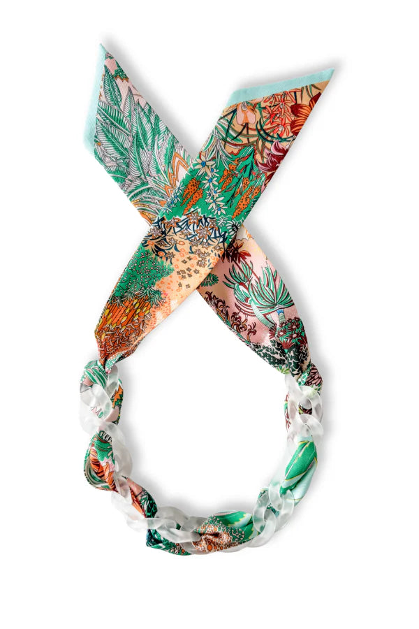 The Catalina Necklace brings effortless style to your wardrobe with its unique blend of frosted acrylic chain and luxuriously soft spring scarf. This versatile piece strikes the perfect balance between playful charm and refined elegance, making it an instant go-to for any occasion. Lightweight and eye-catching, it transforms any outfit with minimal fuss—just clasp and go. Perfect for adding that touch of personality and color your look has been missing.