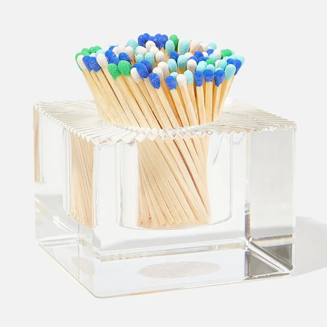 Meet your new flame! Our chic square acrylic match striker is as functional as it is fabulous. Each one comes ready to light with 140 colorful matches and a built-in striker pad on the bottom of the vessel. Designed to double as décor, it’s the perfect little luxury for your coffee table, vanity, or next to your favorite candle. Refillable, reusable, and ridiculously cute - because even lighting a candle should spark joy.