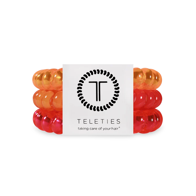 Day Rave Large Hair Ties in Neon Pink and Orange offer a strong grip without damage, doubling as a chic wrist accessory when not in use. Your new favorite hair essentials all year round.